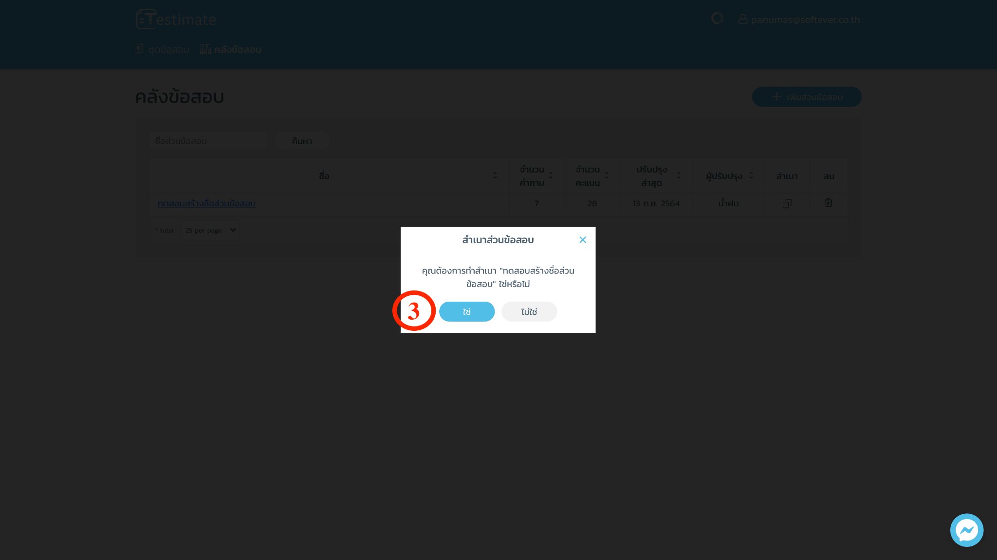 หมายเลข 3 คลิกที่ปุ่ม "ใช่" เพื่อยืนยันการสำเนาส่วนข้อสอบชุดที่ต้องการ