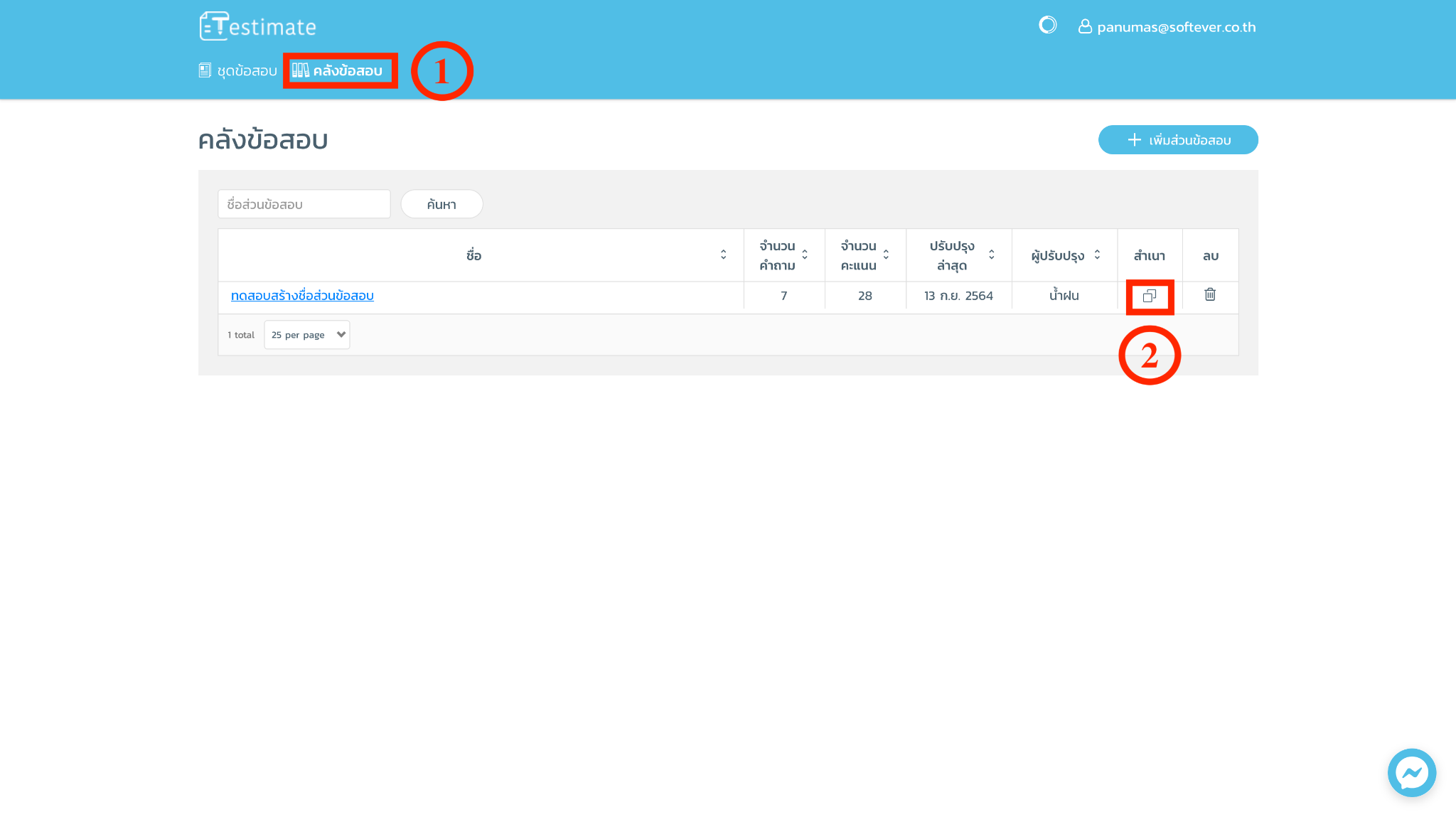 หมายเลข 2 คลิกไอคอน ของส่วนข้อสอบที่ต้องการ