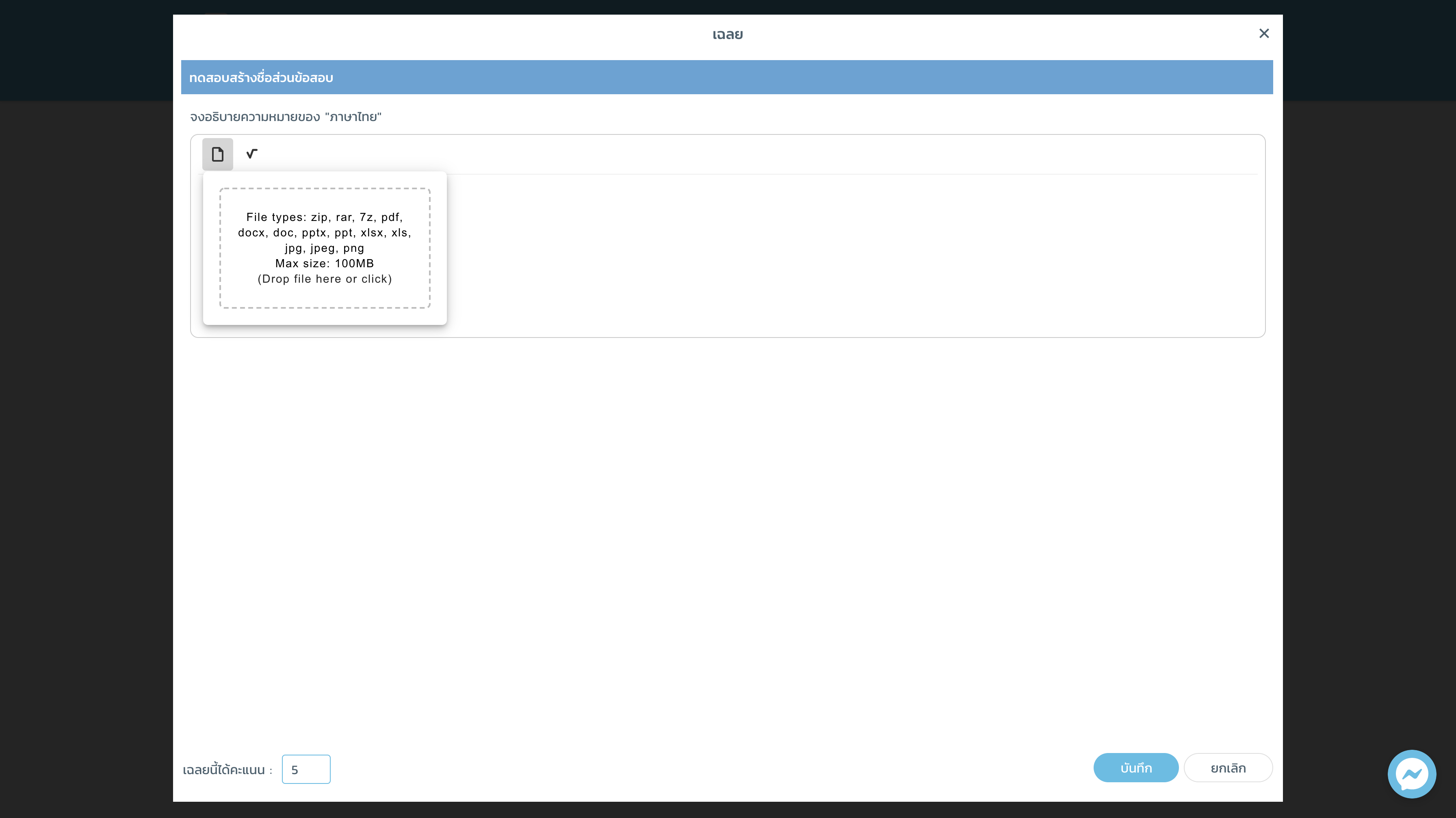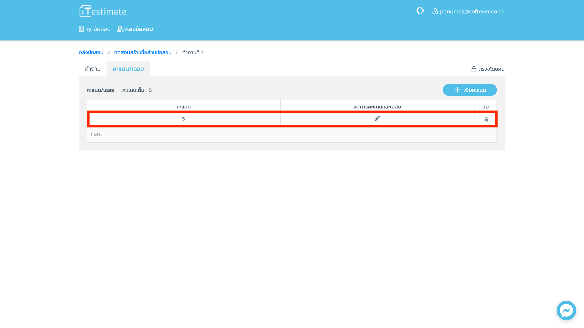 หมายเลข 7 ผู้ใช้งานสามารถแก้ไขคะแนนของเฉลยข้อนี้ได้