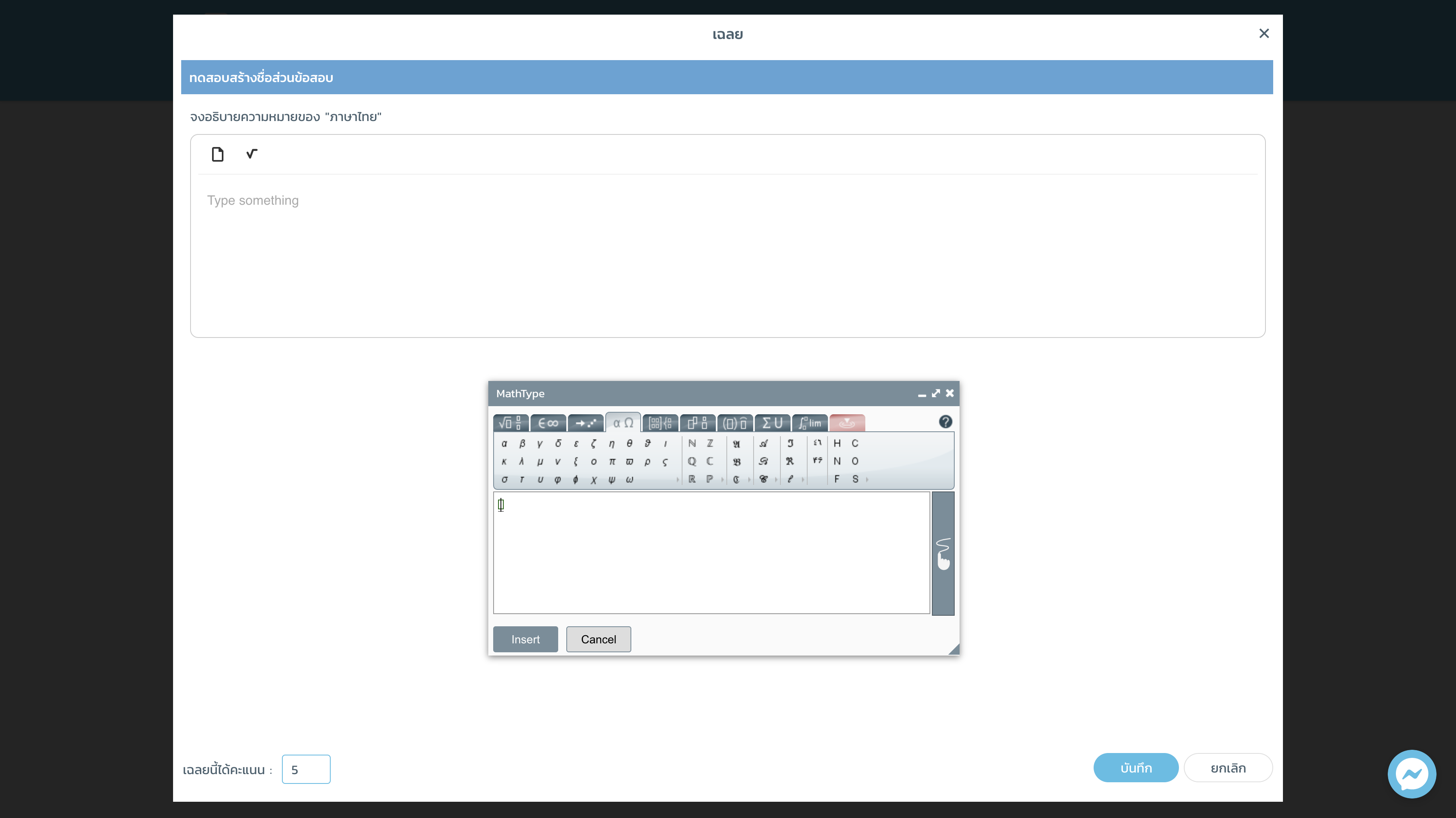 หมายเลข 5.2 คลิกไอคอน เพื่อพิมพ์เฉลยในรูปแบบของ "สมการ" ทางคณิตศาตร์ดังนี้